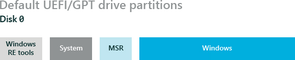 Configuración por defecto de partición de disco basado en UEFI en Windows 7