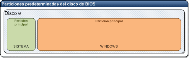 Configuración por defecto de partición de disco basado en BIOS en Windows 7