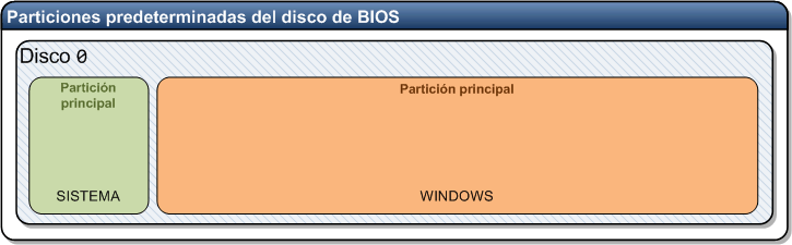Configuración por defecto de partición de disco basado en BIOS en Windows 7
